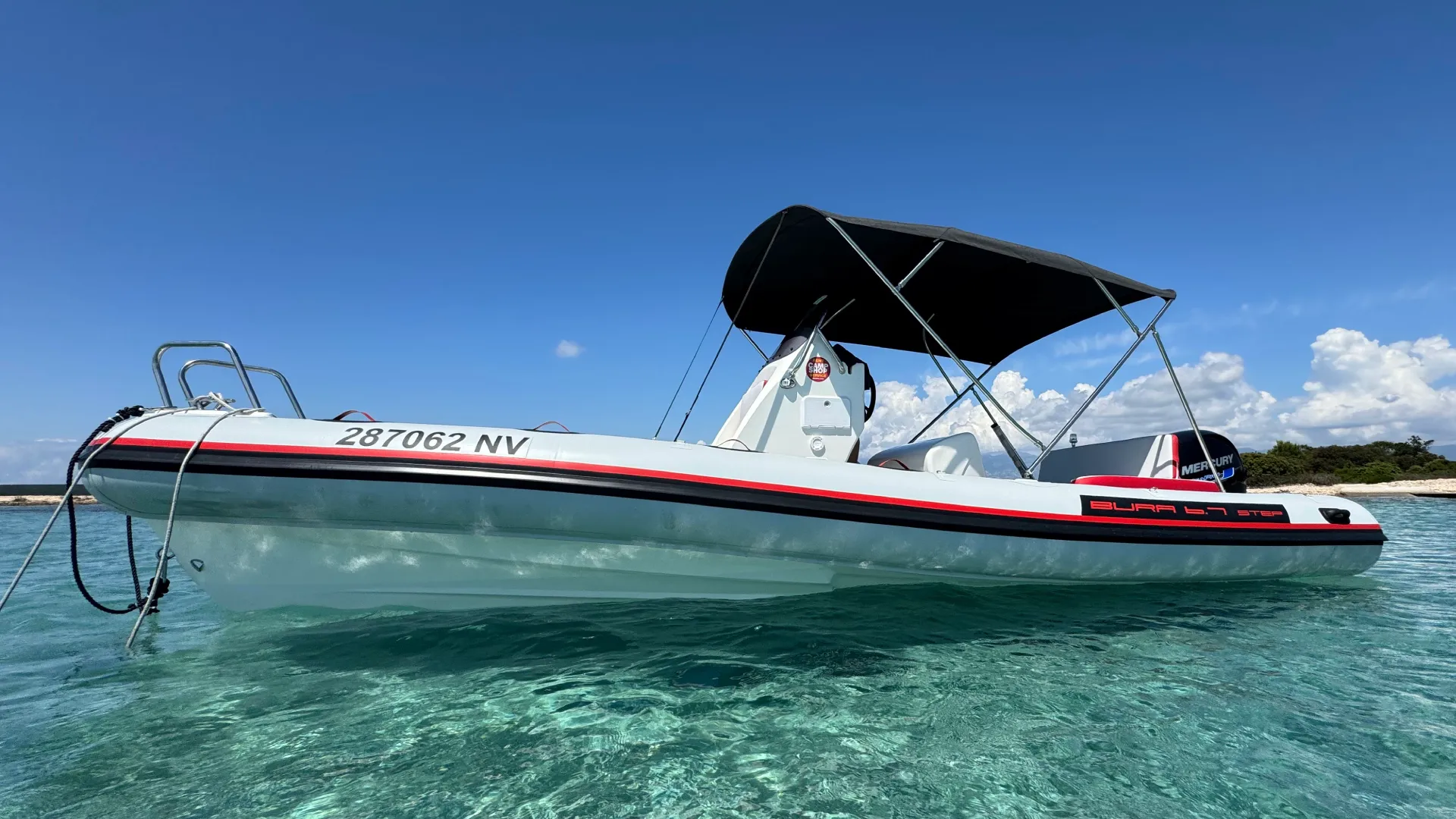 Equipment: Bimini tent, complete safety equipment, navigation map